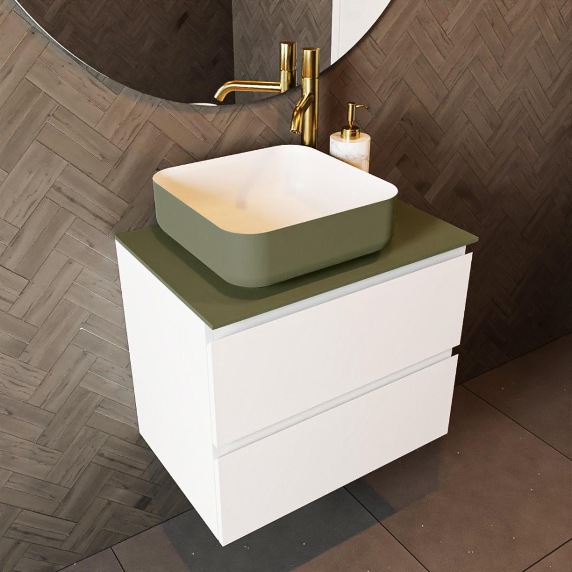 Mondiaz TOP 41 Topblad - 50x41x0.9cm - geschikt voor afdekplaat - Solid surface - Army