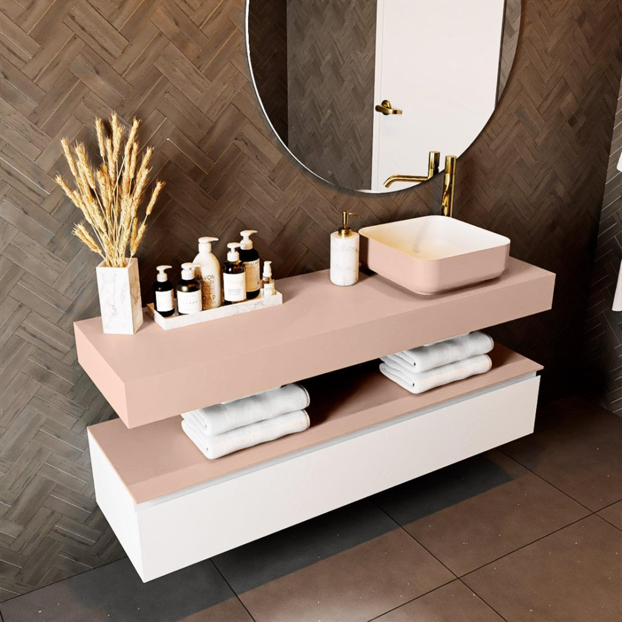 Mondiaz TOP 23 Vrijhangend Topblad - 140x23.5x12cm - geschikt voor waskom - Solid surface - Rosee