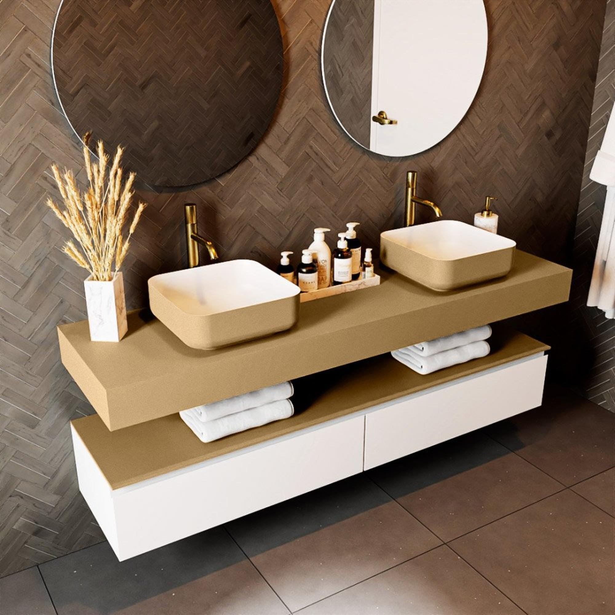 Met zijn strakke lijnen en moderne uitstraling past dit topblad perfect bij hedendaagse badkamerontwerpen. De Oro kleur voegt warmte en elegantie toe aan de ruimte, terwijl de vrijhangende constructie een gevoel van ruimte creëert. Dit topblad is een must-have voor wie op zoek is naar een stijlvolle upgrade voor de badkamer.