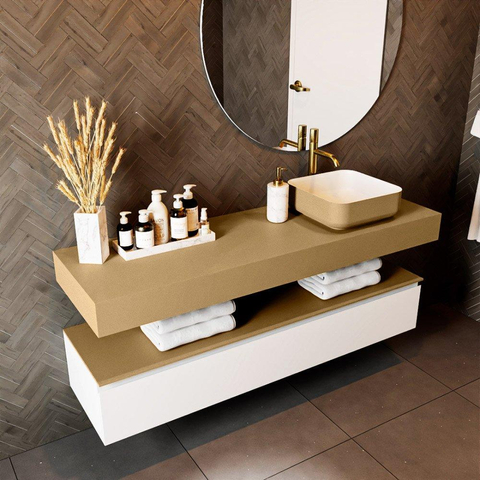 Innovatief en stijlvol, dit vrijhangende topblad van 150x46x12cm is een ware blikvanger in elke badkamer. Gemaakt van hoogwaardig solid surface materiaal in de elegante kleur Oro, biedt de Mondiaz TOP 46 Vrijhangend Topblad een perfecte combinatie van functionaliteit en design. Met zijn strakke lijnen en duurzame constructie voegt dit topblad een vleugje luxe toe aan elke wasruimte.