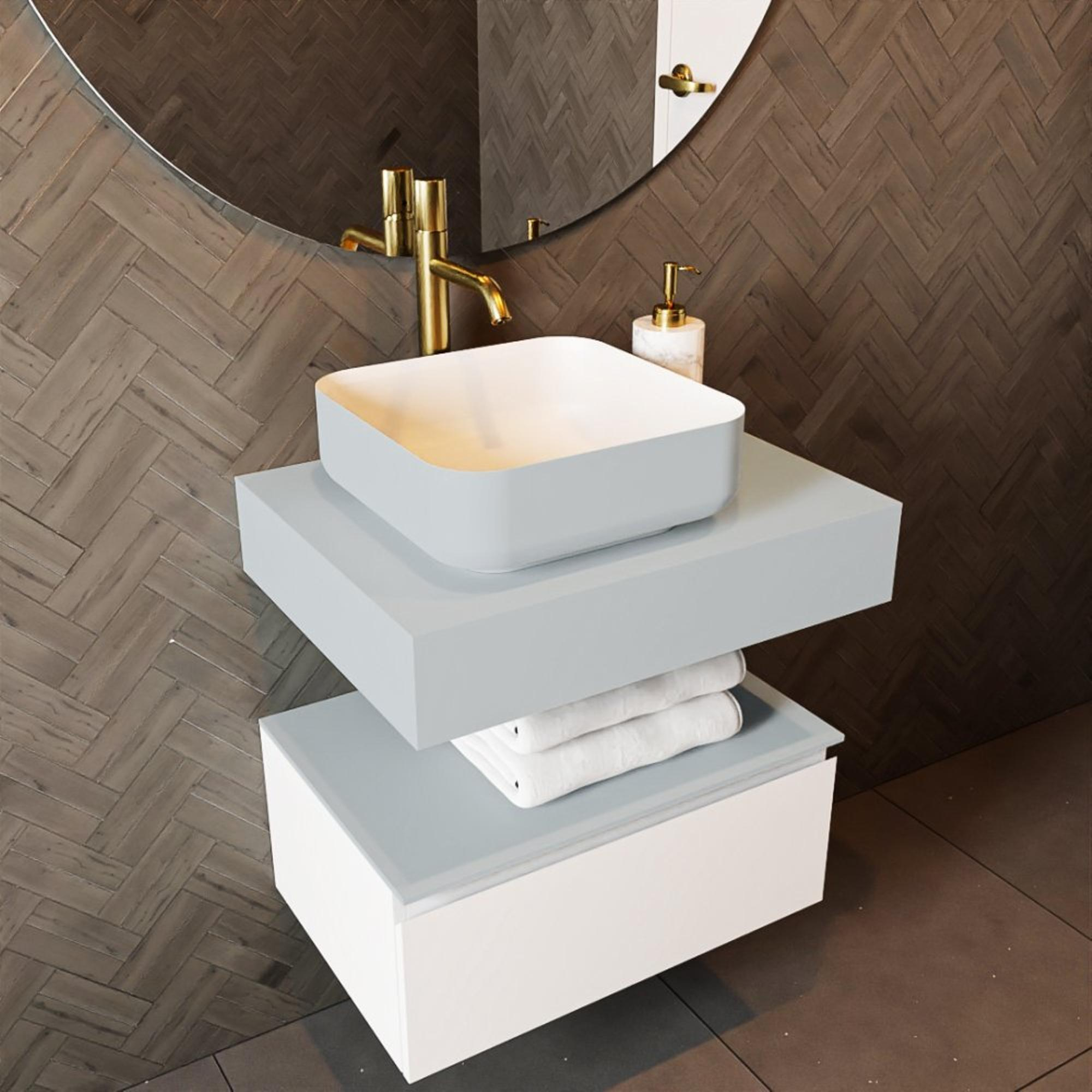 Mondiaz TOP 46 Topblad - 40x41x12cm - geschikt voor afdekplaat - Solid surface - Clay