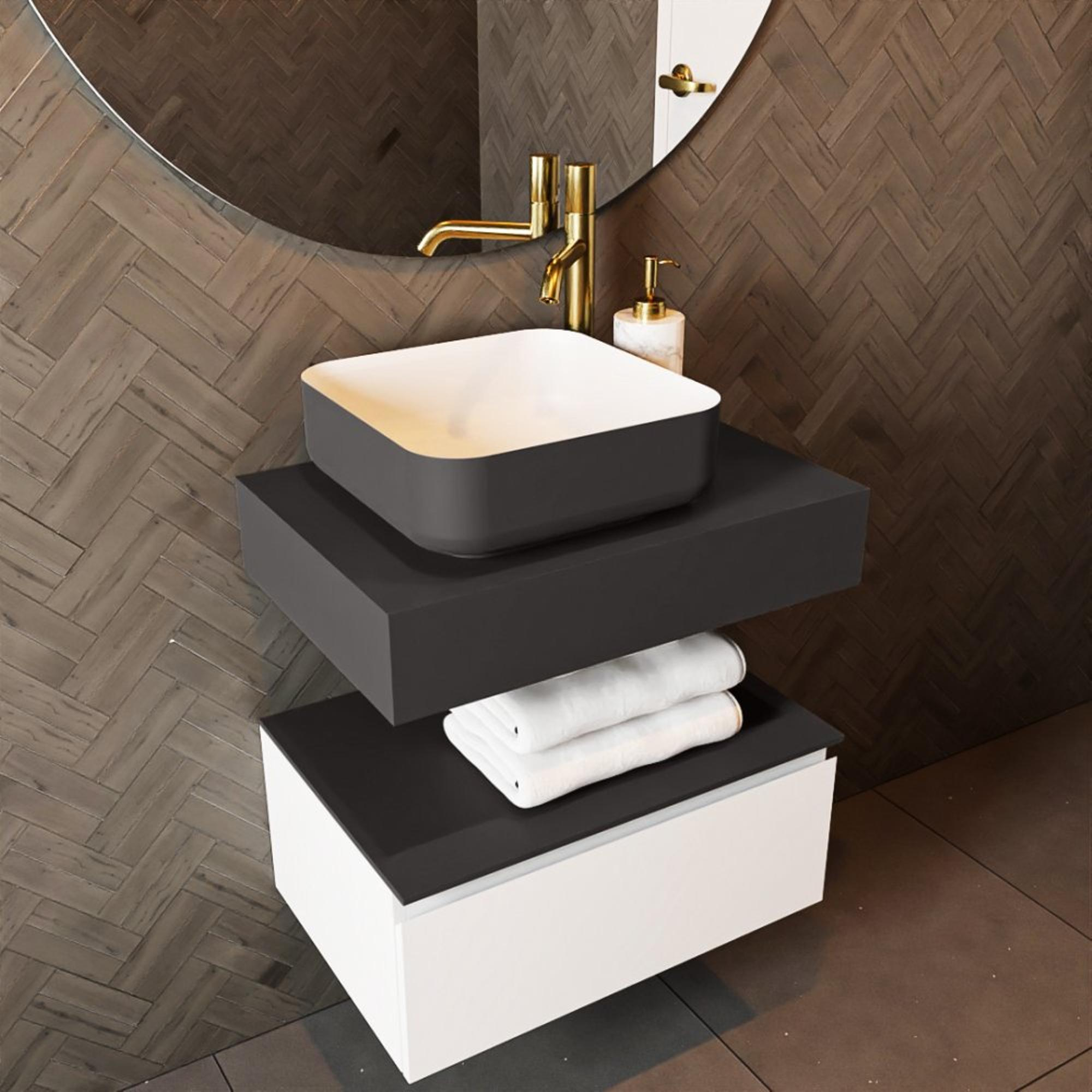Mondiaz TOP 41 Topblad - 50x41x12cm - geschikt voor afdekplaat - Solid surface - Dark Grey
