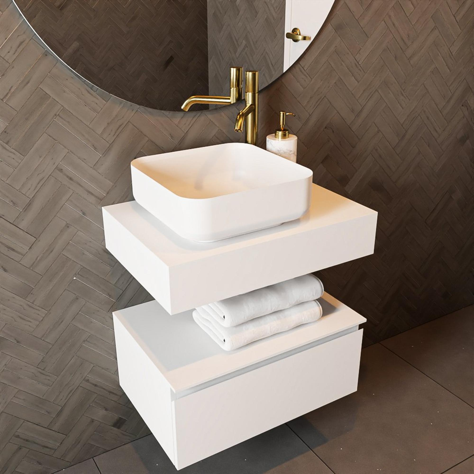 Mondiaz TOP 30 Topblad - 50x30x12cm - geschikt voor afdekplaat - Solid surface - Talc