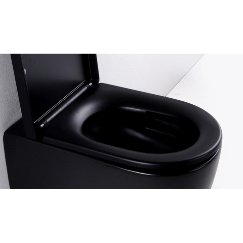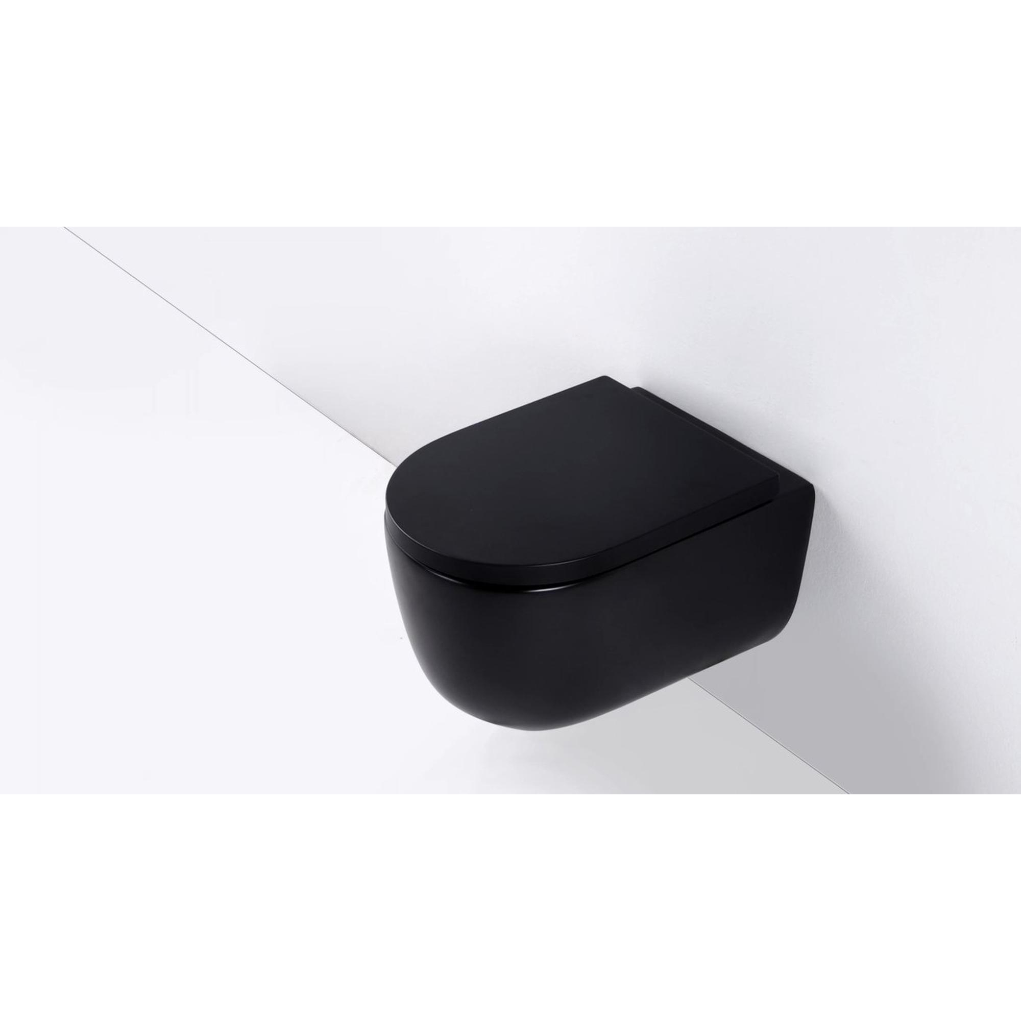 Ontdek de prachtige QeramiQ Dely Swirl Wandclosetset in mat zwart, een ware eyecatcher voor jouw badkamer. Met zijn elegante design en moderne uitstraling voegt dit wandclosetset een vleugje luxe toe aan elke ruimte. Het diepspoelontwerp en de rimless technologie zorgen voor optimale hygiëne en gebruiksgemak. Geniet van het comfort en de stijl die dit toilet biedt, terwijl het zachte sluitmechanisme van de zitting zorgt voor een geruisloze ervaring.