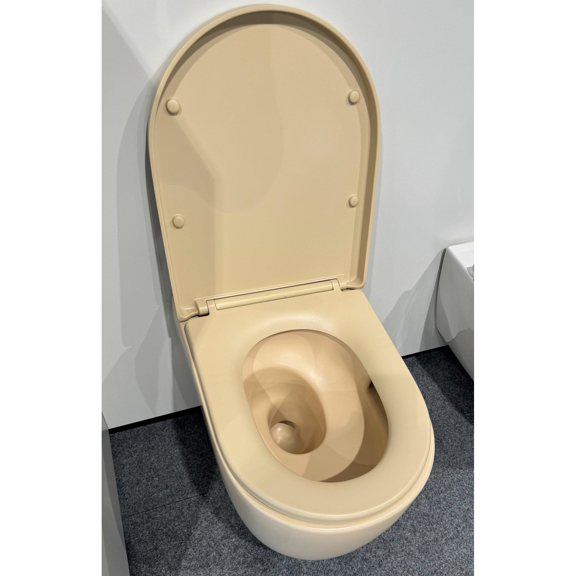 QeramiQ Dely Swirl Wandclosetset - 36.5x53.0cm - diepspoel - rimless - slim softclose zitting - beige