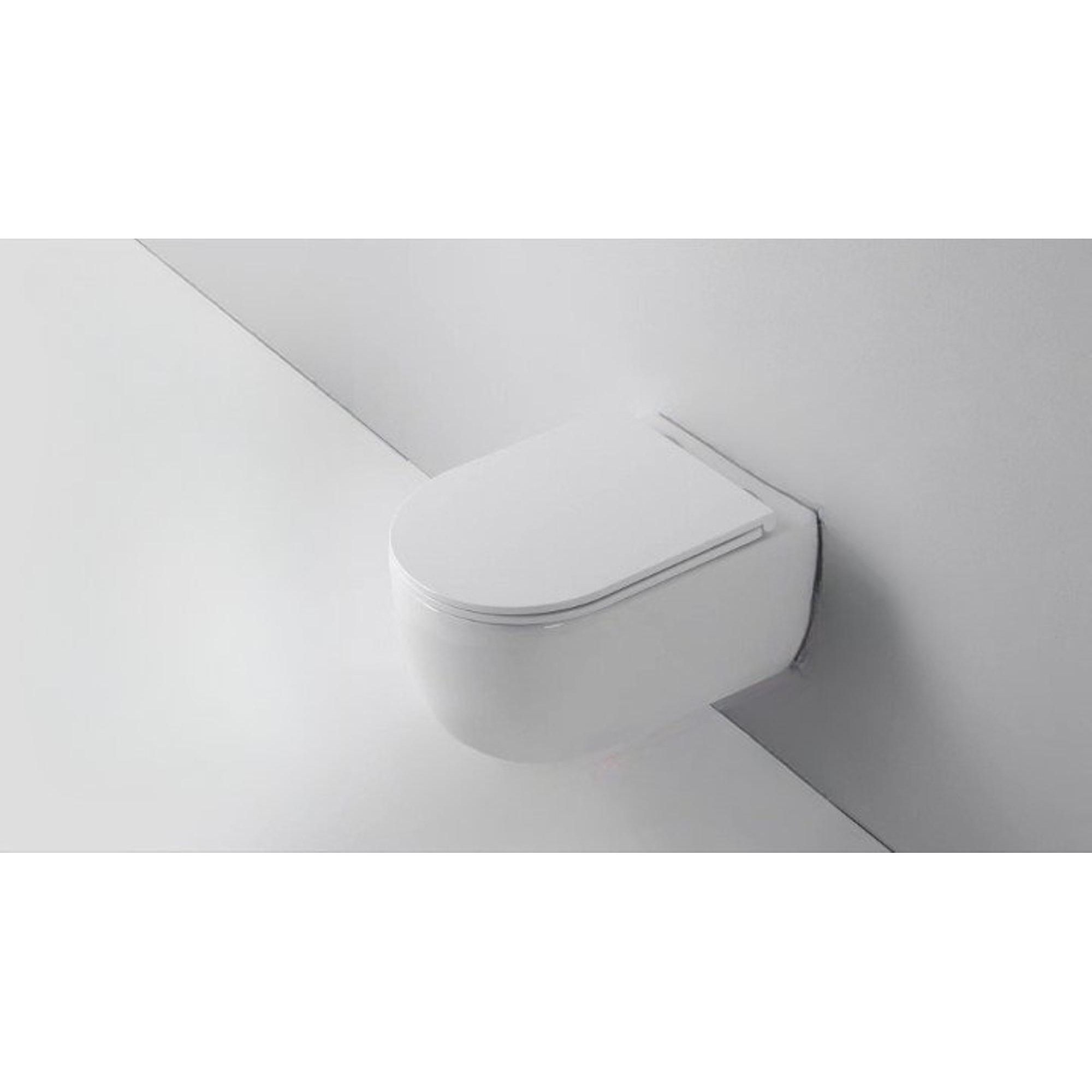 QeramiQ Dely Swirl Wandclosetset - 36.5x53.0cm - diepspoel - rimless - slim softclose zitting - mat wit