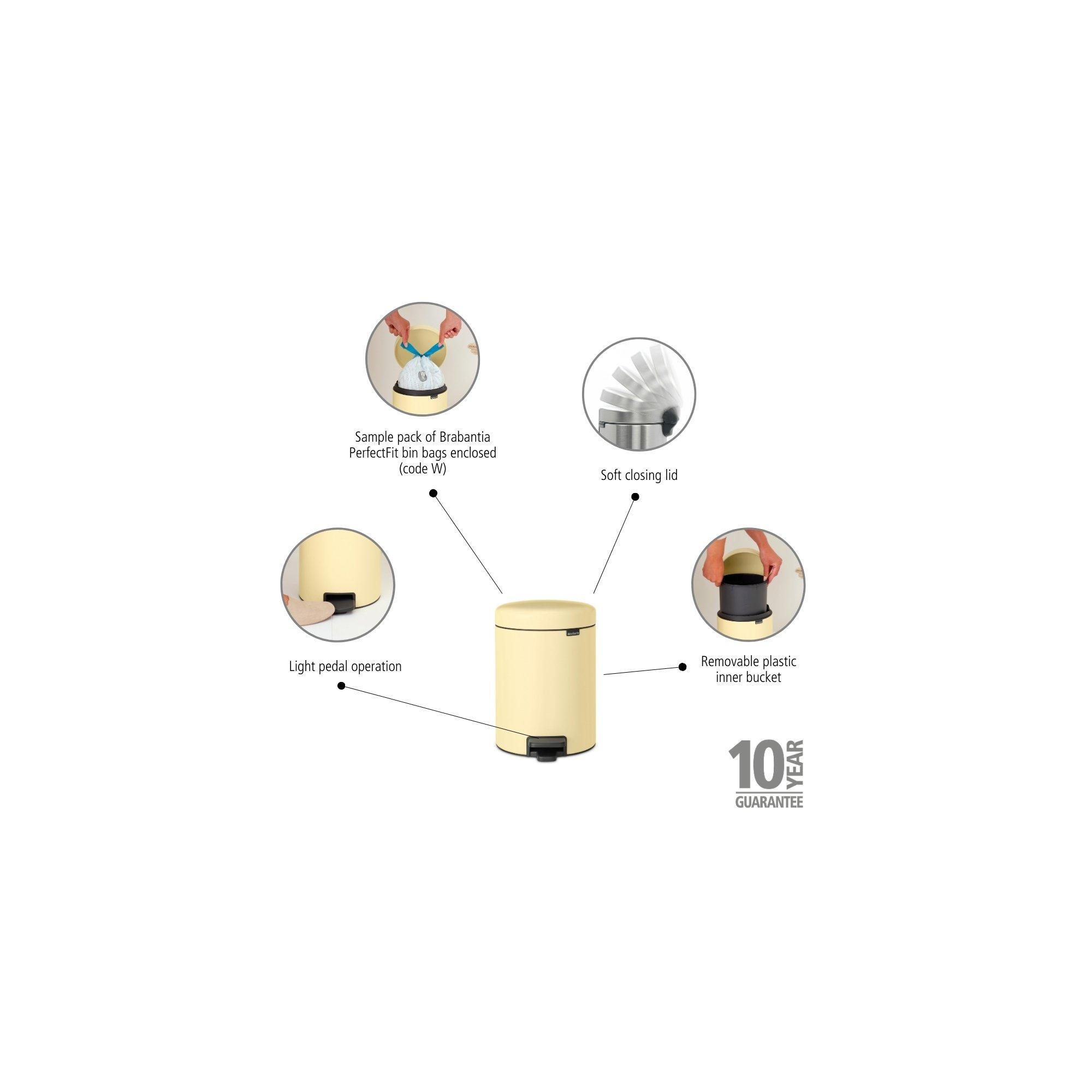 Brabantia NewIcon Pedaalemmer - 5 liter - kunststof binnenemmer - mellow yellow