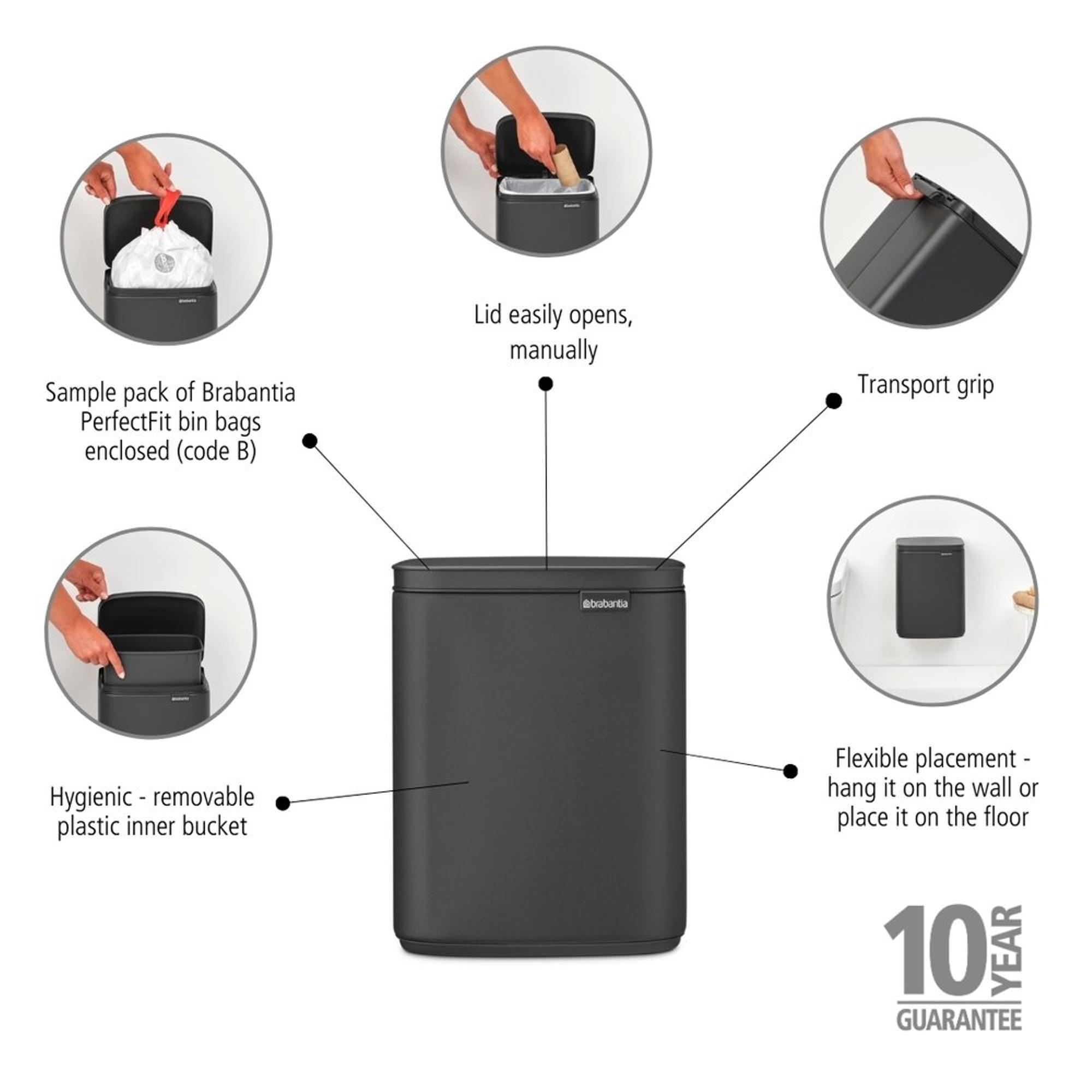 Brabantia Bo Afvalemmer - 7 liter - kunststof binnenemmer - mineral infinite grey