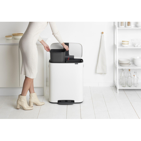 Brabantia Bo Pedaalemmer - 2x30 liter - 2 kunststof binnenemmers - wit