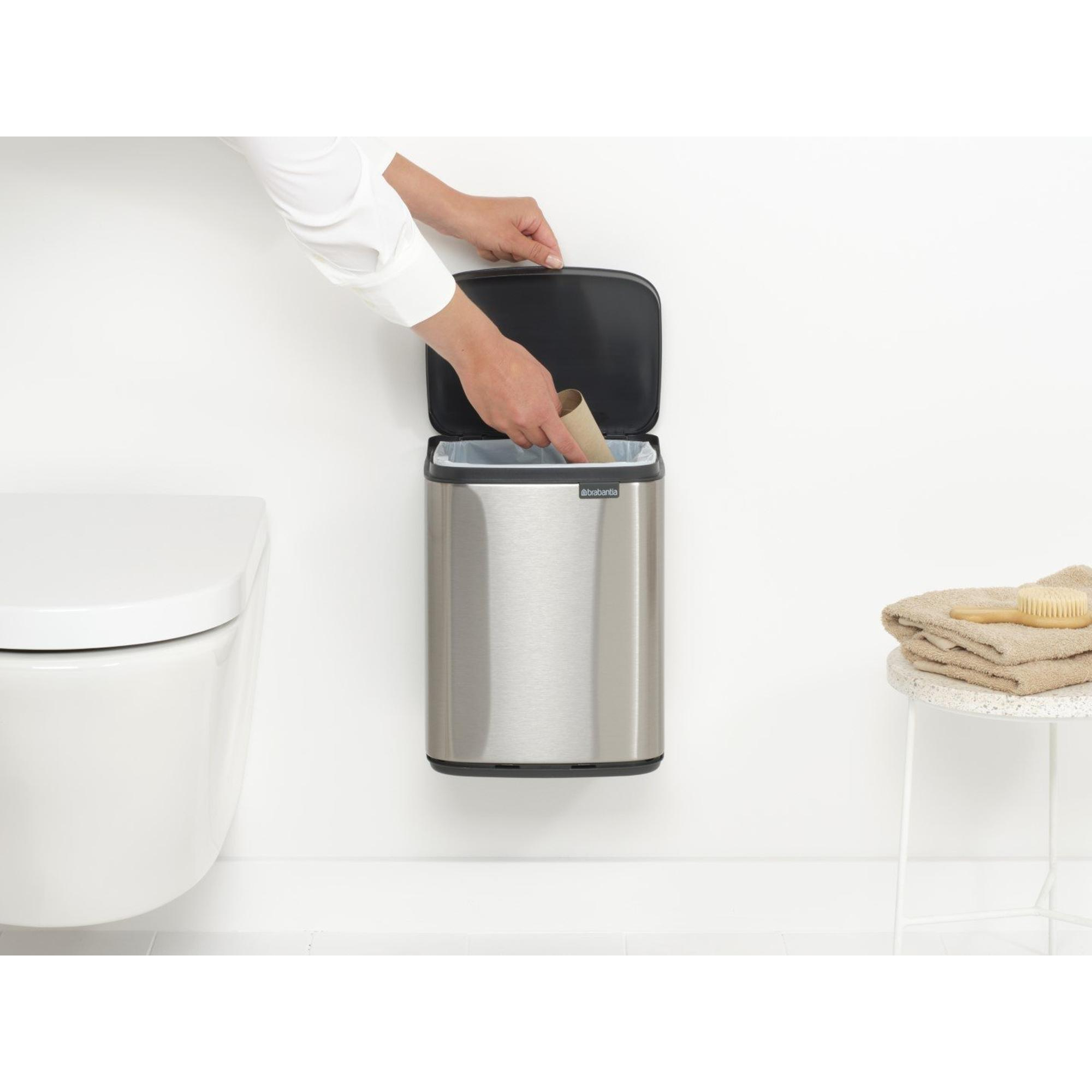De Brabantia Bo Afvalemmer is een stijlvolle toevoeging aan elke badkamer of keuken. Met een capaciteit van 7 liter en een kunststof binnenemmer is deze prullenbak zowel functioneel als elegant. De matt steel fingerprint proof afwerking zorgt ervoor dat vingerafdrukken geen kans krijgen, waardoor de emmer er altijd stralend uitziet.