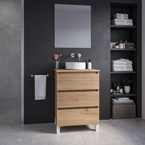 Adema Chaci PLUS Badkamermeubelset - 60x86x46cm - waskom - topblad - 3 lades - rechthoekige spiegel - eiken