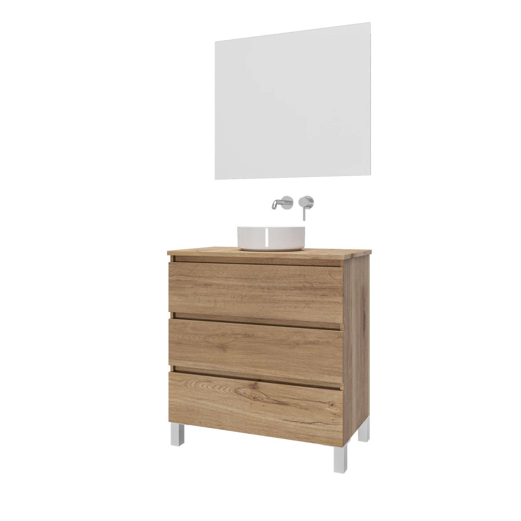 Adema Chaci PLUS Badkamermeubelset - 80x86x46cm - waskom - topblad - 3 lades - rechthoekige spiegel - eiken