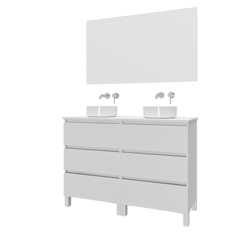 Adema Chaci PLUS Badkamermeubelset - 120x86x46cm - waskom - topblad - 6 lades - rechthoekige spiegel - mat wit