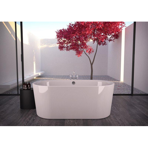 Plieger Kansas Vrijstaand bad - 155x80x60cm - met waterinlaat - met af- en overloopgarnituur - met poten - acryl - wit