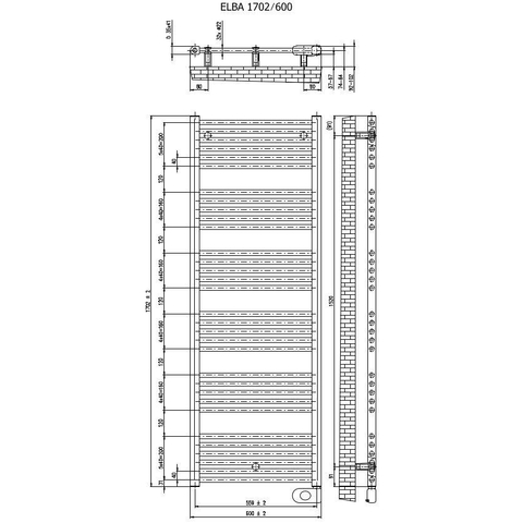 Plieger Elba Electrical elektrische designradiator - 1702X600mm - met thermostaat - 900w - wit