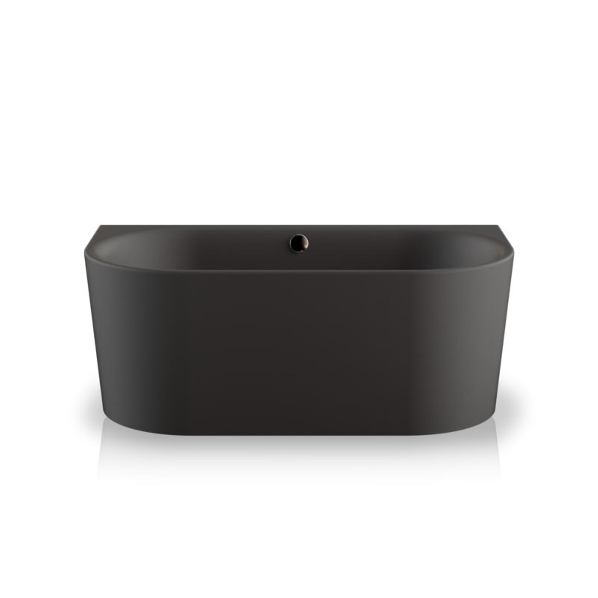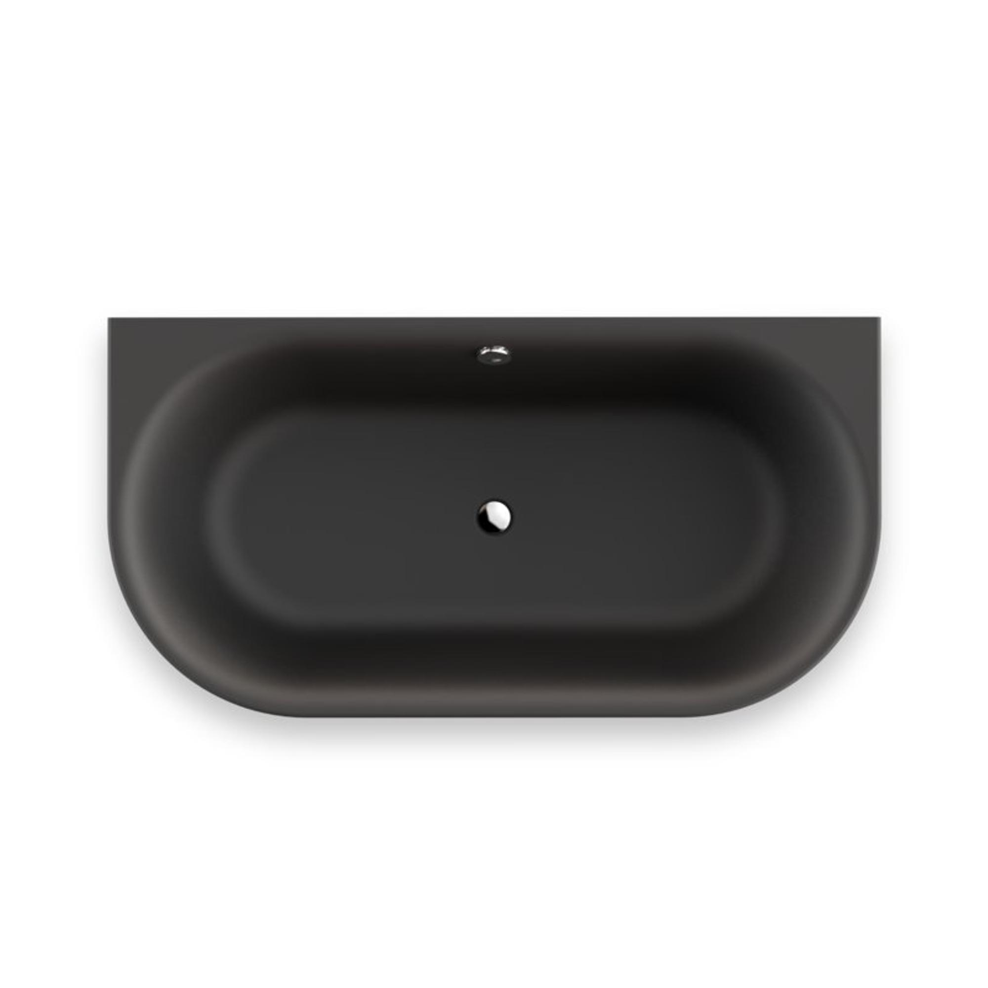 Plieger Kansas Halfvrijstaand bad - 155x80x60cm - met waterinlaat - met af- en overloopgarnituur - met poten - acryl - mat zwart