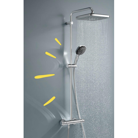 De beste functies van het GROHE Vitalio Comfort 250 thermostatische douchesysteem zorgen elke keer weer voor een veilige, comfortabele, milieuvriendelijke douche-ervaring – het is een veelzijdige badkamer upgrade voor een betaalbare prijs