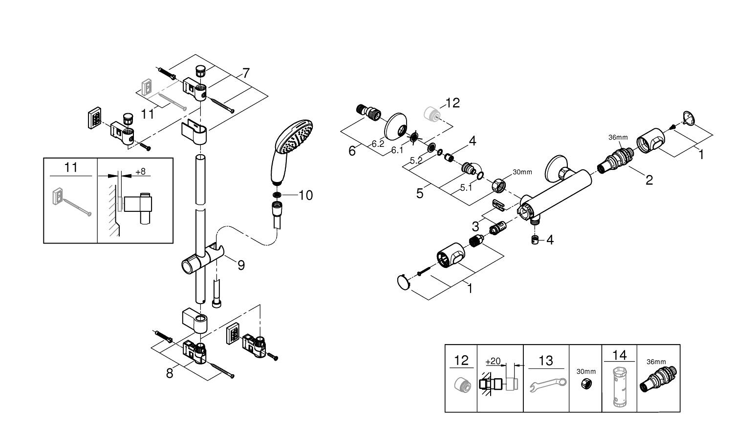 geschikt om te schroeven (inclusief schroeven en pluggen) of lijmen (GROHE QuickGlue S 41 247 000 wordt apart verkocht - 2 x nodig)
