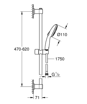 De GROHE Vitalio Start 110 doucheset is het complete pakket waarmee je je badkamer en je doucheroutine een upgrade geeft. De handdouche van 110 mm heeft 3 straalsoorten die geschikt zijn voor verschillende momenten: de rustgevende Rain Spray helpt tegen stress, de Massage Spray werkt verkwikkend, terwijl de gefocuste Jet Spray ideaal is voor het uitspoelen van je haar na het wassen. Alle douchestralen zijn eenvoudig te bedienen via de innovatieve GROHE SmartSwitch draaiknop aan de achterkant van de douchekop. De GROHE DreamSpray technologie stelt de waterstraal van elke sproeigaatje op elkaar af, zodat je kunt genieten van een gelijkmatige douchestraal. De douchekop werkt ook waterbesparend dankzij de GROHE Water Saving debietbegrenzer, die het waterverbruik aanzienlijk vermindert zonder in te leveren op de prestaties. Een minimale druk van 1,0 bar wordt aanbevolen. Dankzij GROHE SpeedClean kun je met je vinger de sproeigaatjes eenvoudig ontdoen van kalkaanslag. De ShockProof siliconen ring beschermt de handdouche én de douchebak of badkuip tegen schade als je hem per ongeluk laat vallen. Het pakket bevat de VitalioFlex Trend doucheslang van 1750 mm en de Vitalio Universal douchestang van 600 mm. De stevige slang is ontworpen voor intensief gebruik en is bestand tegen een waterdruk tot 5 bar, een spanning tot 50 kg en een temperatuur tot 70°C. Het gladde oppervlak is gemakkelijk schoon te maken – even afvegen met een droge doek en hij ziet er weer als nieuw uit. Bovendien veroorzaakt hij geen schade als hij in contact komt met de douchecabine of het bad. Het AntiFold-ontwerp zorgt ervoor dat hij niet buigt en vervelende knikken krijgt. De douchestang is voorzien van een glijstuk en een draaibare houder, waardoor je de hoogte en hoek van de douche makkelijk naar wens kunt aanpassen. De bovenste montagebeugel is ook in hoogte verstelbaar, wat betekent dat hij op bestaande boorgaten kan worden gemonteerd. En dankzij de schitterende maar slijtvaste GROHE Long-Life Finish blijft deze set er jarenlang onberispelijk uitzien. Je hebt geen gereedschap nodig voor de installatie – dankzij het QuickFix principe is de installatie "surprisingly easy". Het universele montagesysteem past op alle standaard doucheslangen. Je hoeft de slang alleen maar vast te draaien. De GROHE ProGrip-moeren op de doucheslang hebben een gekarteld oppervlak, zodat ze een optimale grip bieden en je ze gemakkelijk vast kunt draaien. En je kunt de houder vastschroeven met de meegeleverde schroeven en pluggen of – nog makkelijker – gewoon vastlijmen! Het enige wat je daarvoor nodig hebt zijn 2 stuks van de GROHE QuickGlue Set S (41247000, apart verkrijgbaar). De draagkracht is max. 20 kg. Als je extra hulp nodig hebt, bekijk dan onze QuickVideo of raadpleeg de QuickGuide. bestaat uit: