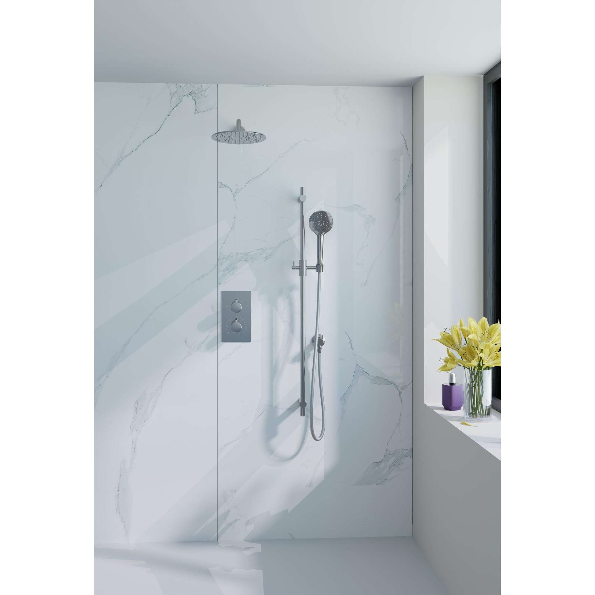 Fortifura Calvi Inbouw Regendoucheset - thermostatisch - wandarm - glijstang - 25cm hoofddouche - ronde handdouche - gladde doucheslang - chroom