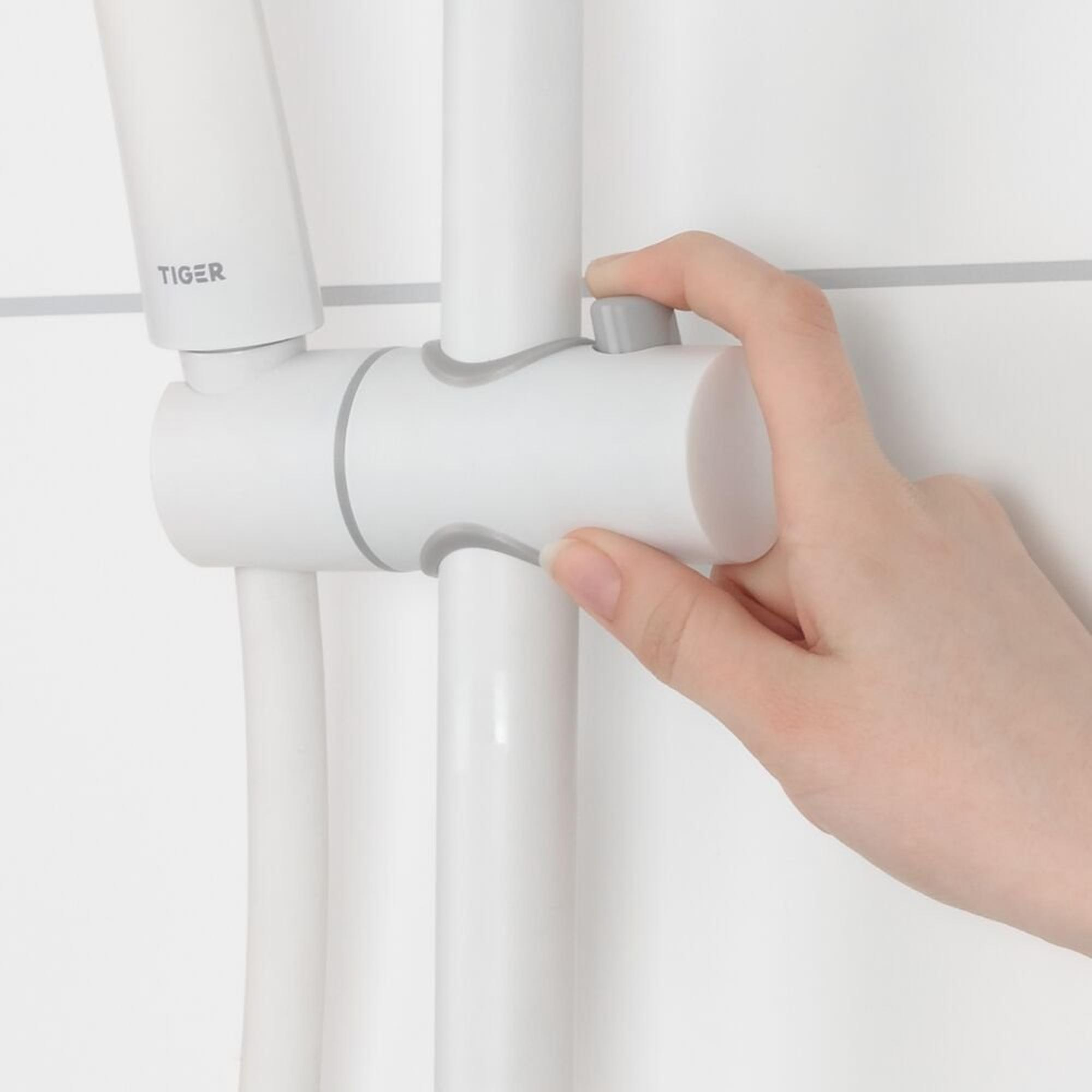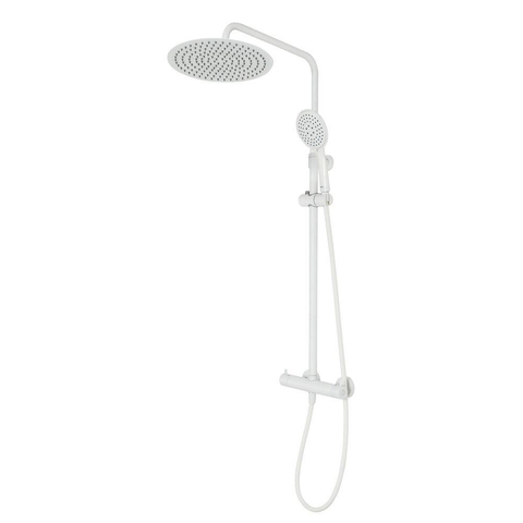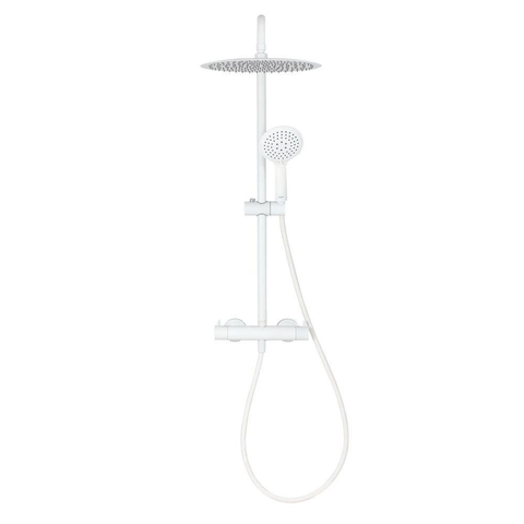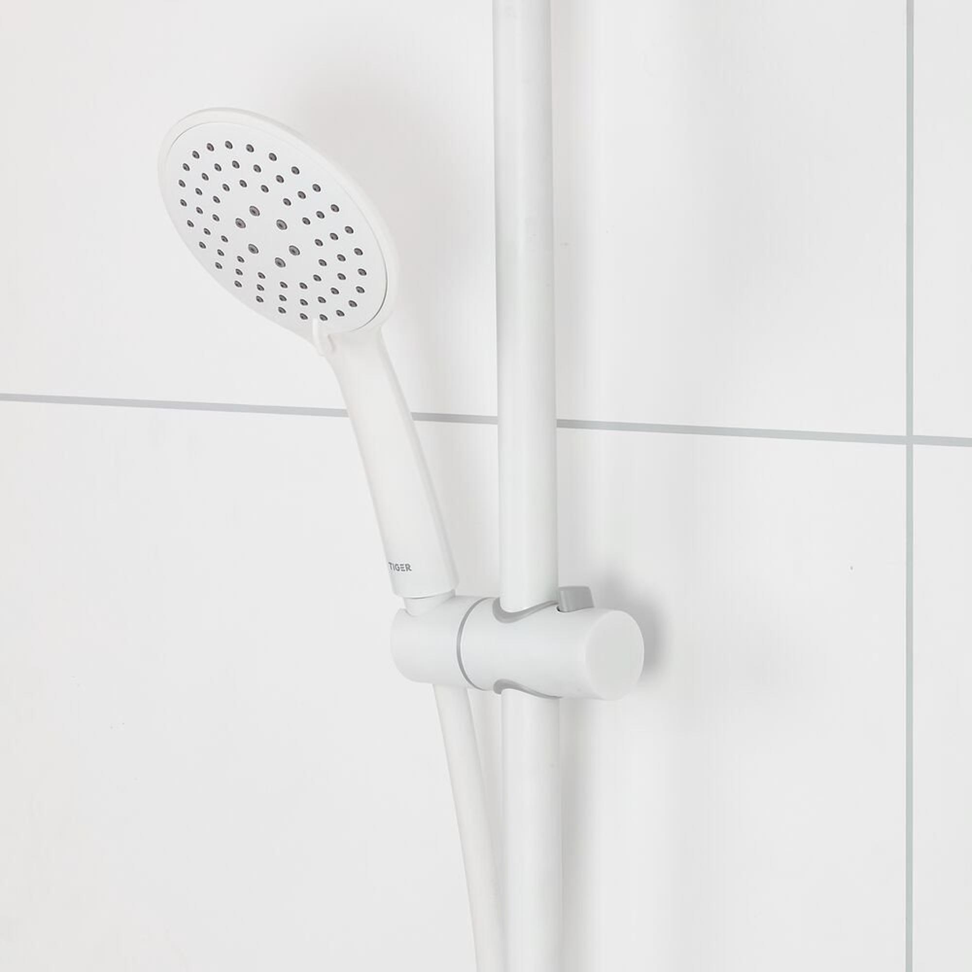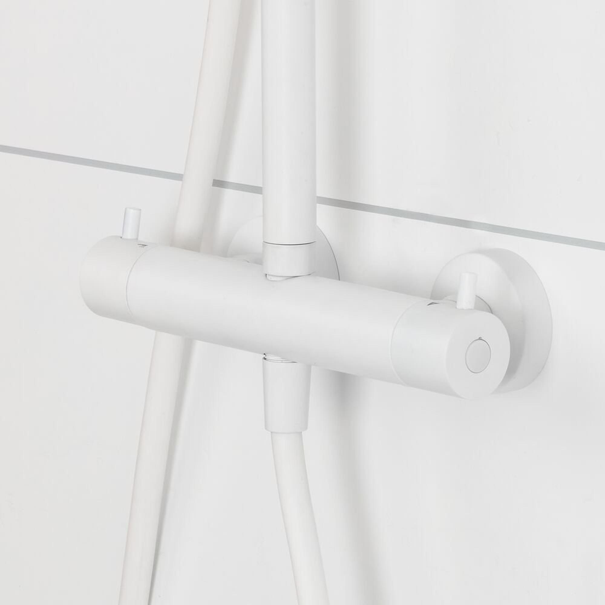 Deze doucheset is niet alleen een plezier om te gebruiken, maar ook een mooie aanvulling op je badkamer. De witte afwerking geeft een frisse, Scandinavische uitstraling die rust en eenvoud uitstraalt. Dankzij de verstelbare douchekoppen en glijstang pas je alles eenvoudig aan naar jouw wensen. Bovendien zorgt de thermostatische kraan ervoor dat het water direct op de gewenste temperatuur is – wel zo veilig én comfortabel.