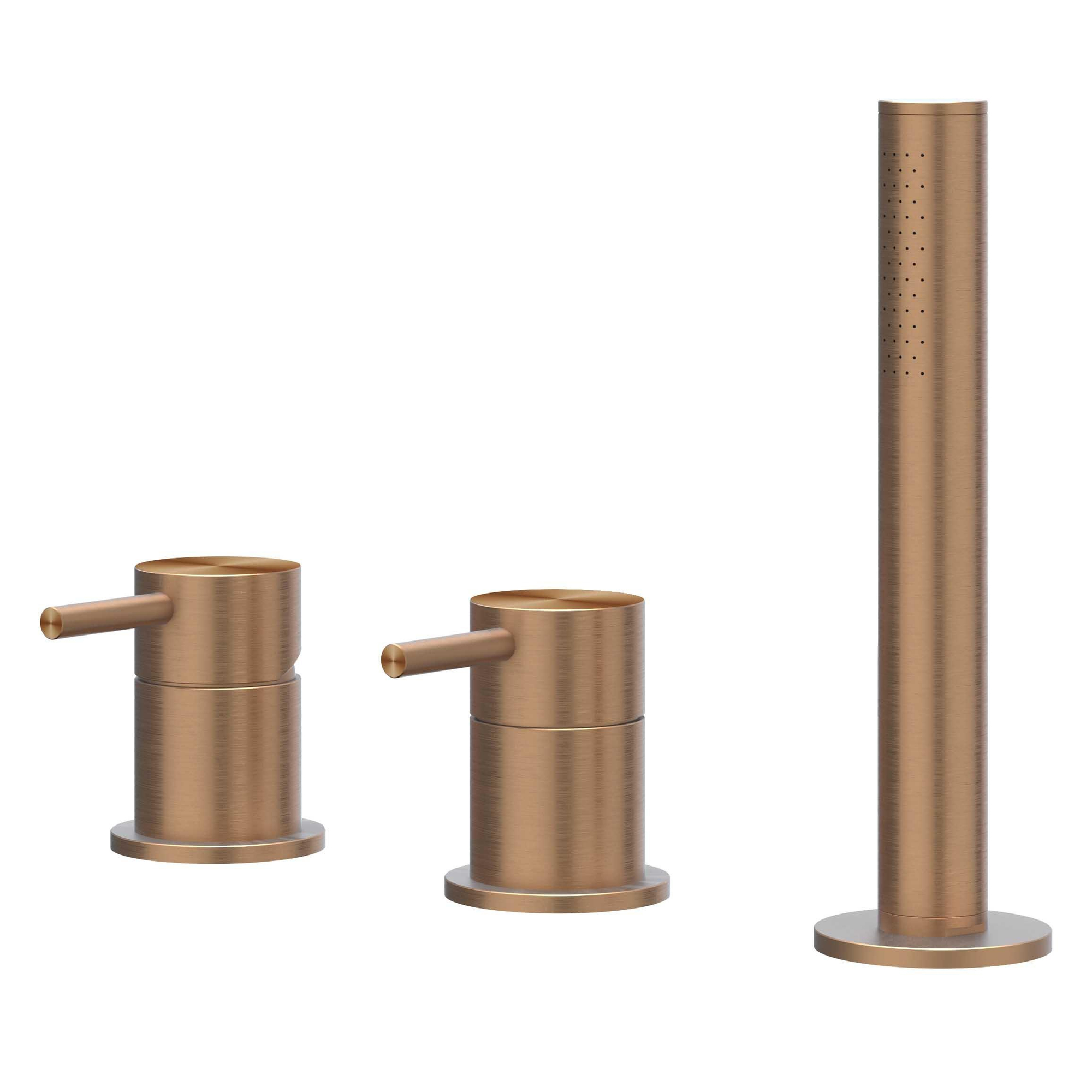 IVY Concord Badrandcombinatie 3-gats mengkraan met uittrekbare handdouche, zonder uitloop RVS316 geborsteld mat koper PVD