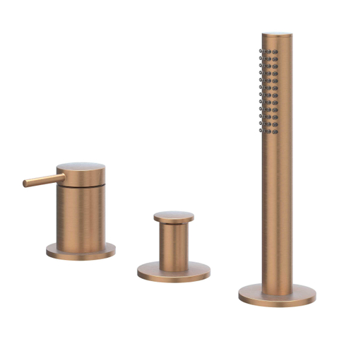 IVY Bond Badrandcombinatie 3-gats mengkraan met uittrekbare handdouche, zonder uitloop Geborsteld mat koper PVD