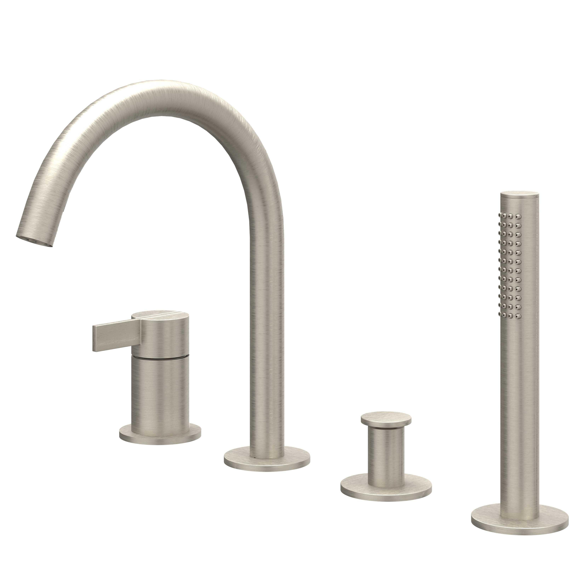 De IVY Pact Badrandcombinatie 4-gats mengkraan met draaibare uitloop en uittrekbare handdouche in geborsteld nickel PVD is een prachtige toevoeging aan elke badkamer. Met zijn elegante ontwerp en hoogwaardige afwerking straalt dit product luxe en stijl uit. Deze badrandcombinatie combineert functionaliteit met esthetiek, waardoor het niet alleen een praktische keuze is, maar ook een visueel aantrekkelijke aanwinst voor je badkamer.