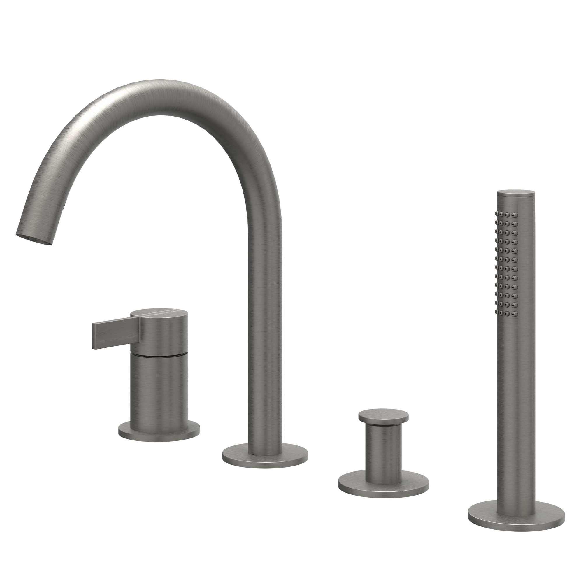 IVY Pact Badrandcombinatie 4-gats mengkraan met draaibare uitloop uittrekbare handdouche Geborsteld metal black PVD