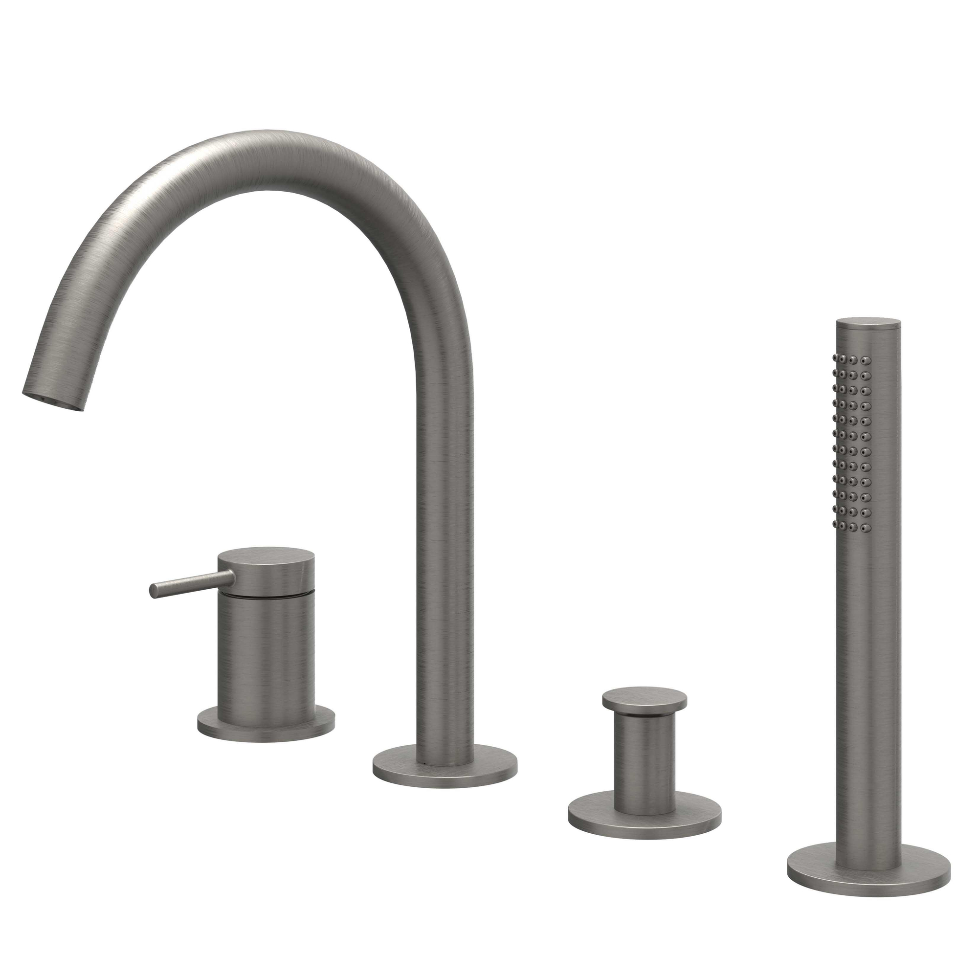 IVY Bond Badrandcombinatie 4-gats mengkraan met draaibare uitloop uittrekbare handdouche Geborsteld metal black PVD