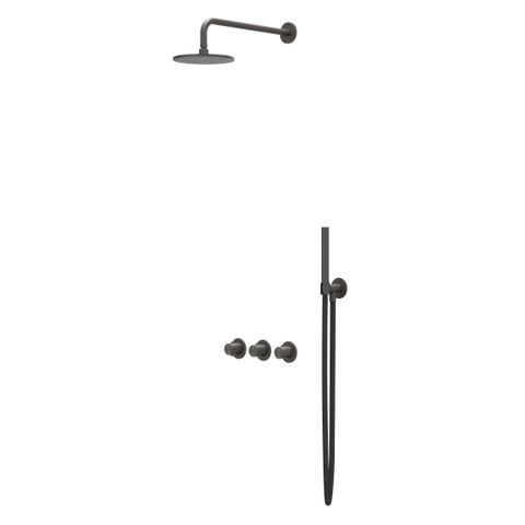 IVY Concord Regendoucheset - inbouw - symmetry - 2 stopkranen - 40cm wandarm - 20cm medium hoofddouche - houder met uitlaat - 150cm doucheslang - staafmodel handdouche - RVS316 - geborsteld carbon black PVD
