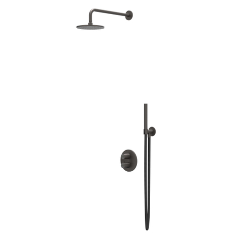 IVY Tribe Regendoucheset - inbouw - 2-weg stop-omstel - 40cm wandarm - 20cm medium hoofddouche rond - glijstang met uitlaat - 150cm doucheslang - staafmodel handdouche - RVS316 - geborsteld carbon black PVD