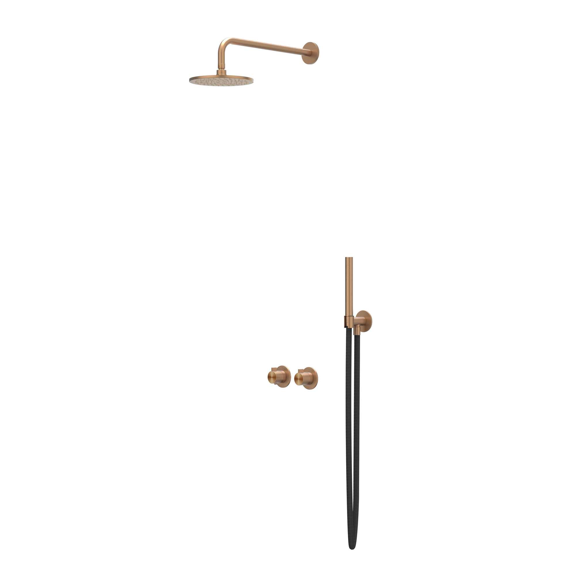 IVY Tribe Regendoucheset 3 inbouw symmetry met 2-weg stop-omstel - 40cm wandarm - 25cm medium hoofddouche - glijstang met uitlaat - doucheslang 150cm - staafmodel handouche RVS316 geborsteld mat koper PVD
