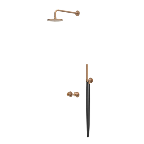 IVY Tribe Regendoucheset - inbouw - symmetry - 2-weg stop-omstel - 40cm wandarm - 25cm medium hoofddouche - glijstang met uitlaat - 150cm doucheslang - staafmodel handdouche - RVS316 - geborsteld mat koper PVD