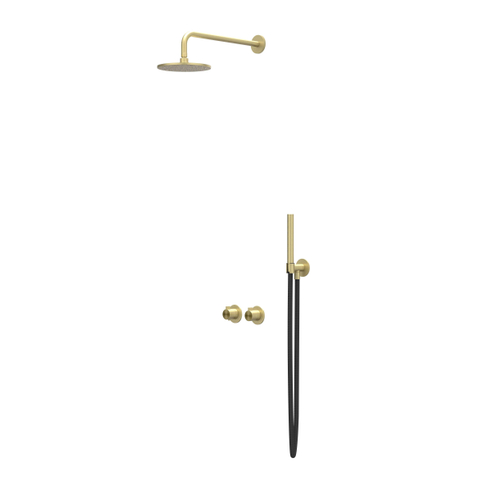IVY Tribe Regendoucheset 3 inbouw symmetry met 2-weg stop-omstel - 30cm plafondbuis - 25cm medium hoofddouche - glijstang met uitlaat - doucheslang 150cm - staafmodel handouche RVS316 geborsteld mat goud PVD