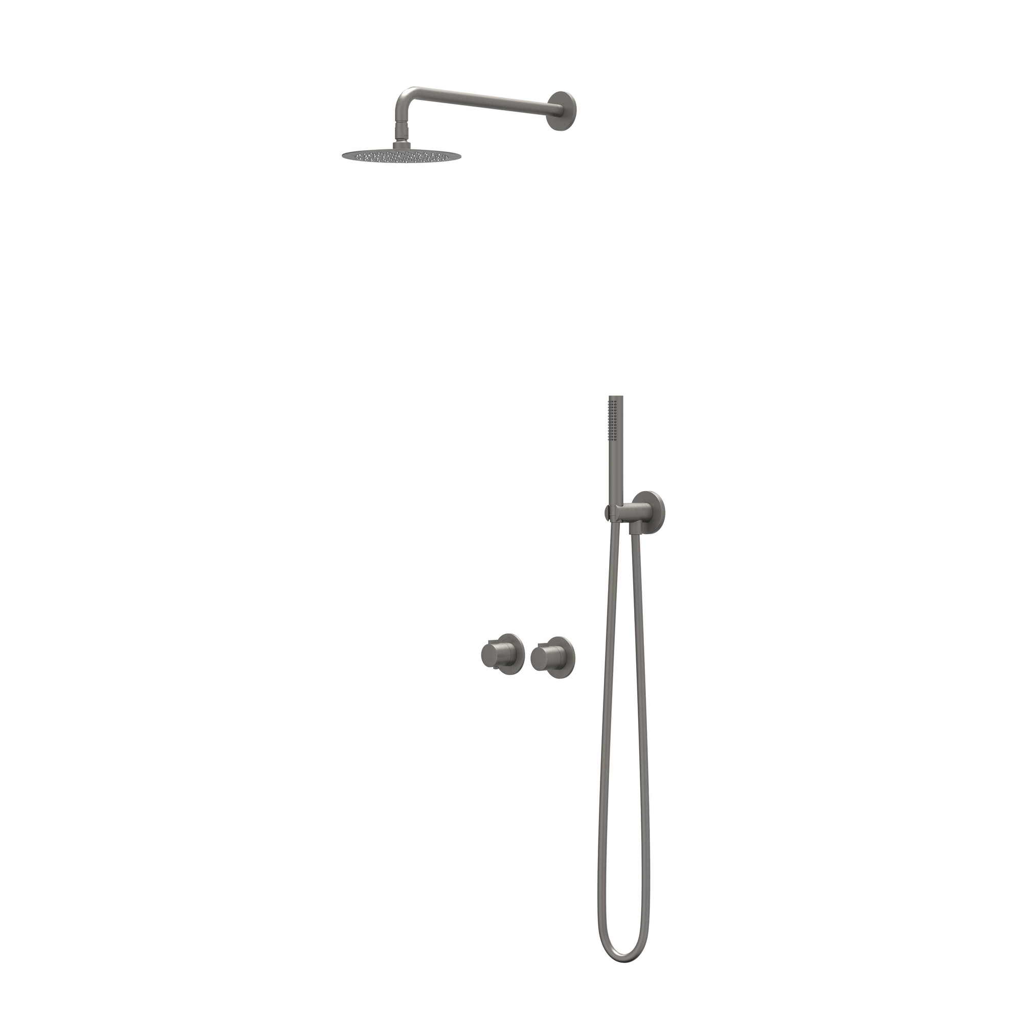 IVY Pact Regendoucheset 3 inbouw symmetry met 2-weg stop-omstel - 15cm plafondbuis - 20cm medium hoofddouche - glijstang met uitlaat - doucheslang 150cm - staafmodel handouche Geborsteld metal black PVD