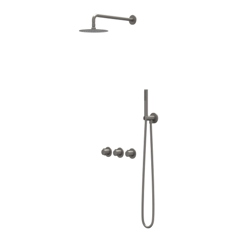 IVY Pact Regendoucheset 4 inbouw symmetry met 2 stopkranen - 30cm plafondbuis - 20cm medium hoofddouche - glijstang met uitlaat - doucheslang 150cm - staafmodel handdouche Geborsteld metal black PVD