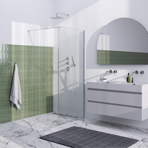 Met zijn hoogwaardige afwerking en materialen ademt deze inloopdouche luxe. Het heldere glas zorgt voor een transparante en elegante uitstraling, terwijl het chroom frame een vleugje glamour toevoegt. Stap in deze douchecabine en ervaar een gevoel van weelde en comfort, elke keer dat u doucht. Geniet van de luxe van een spa-ervaring in uw eigen badkamer.