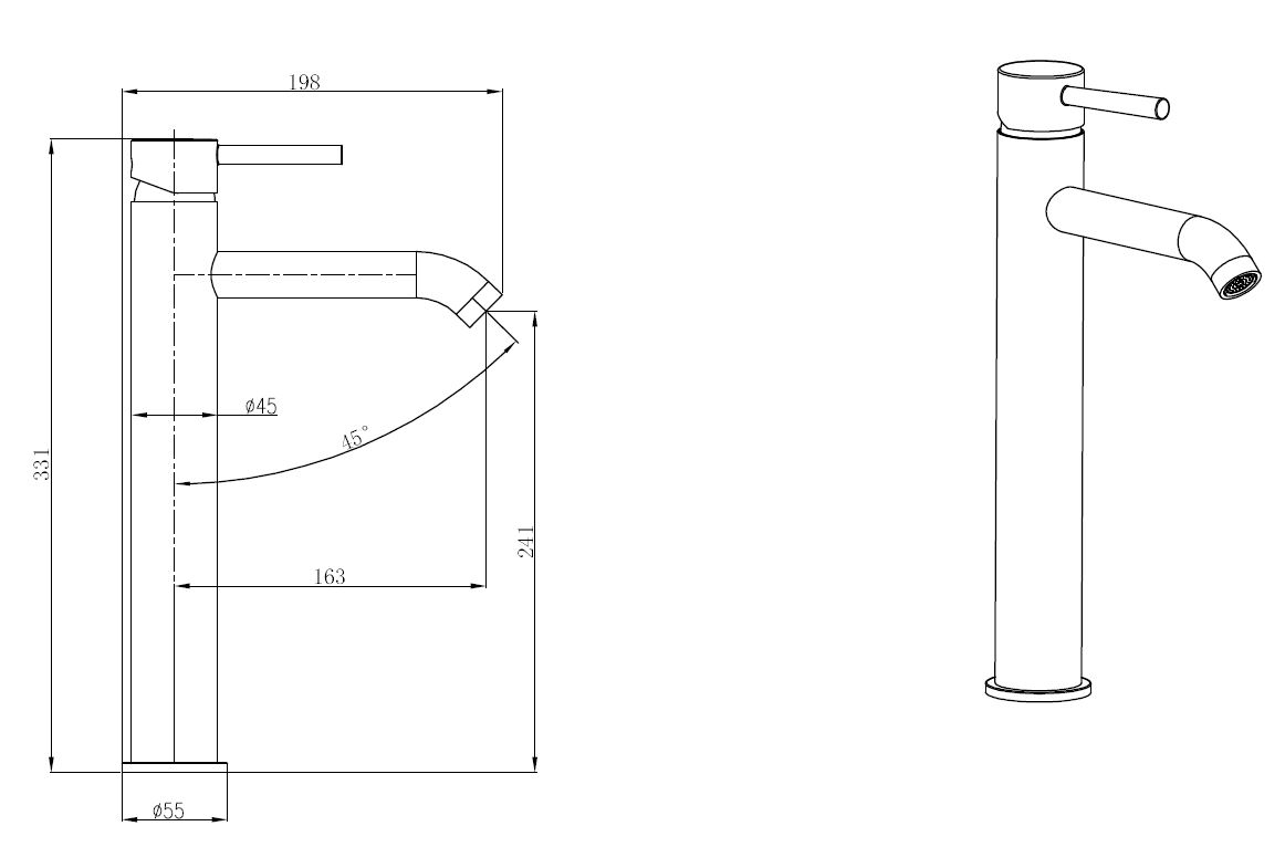De verhoogde wastafelkraan heeft een diepte van 19,8cm en hoogte van 33,1 cm en komt daarmee makkelijk tot boven de waskom. Ideaal voor bijvoorbeeld een opbouw waskom. Dankzij de lange uitloop kun je ook gemakkelijk je haar wassen boven de wastafel. Door het verhoogde model is deze ook zeer praktisch in het gebruik wanneer je bijvoorbeeld een emmer met water wilt vullen.