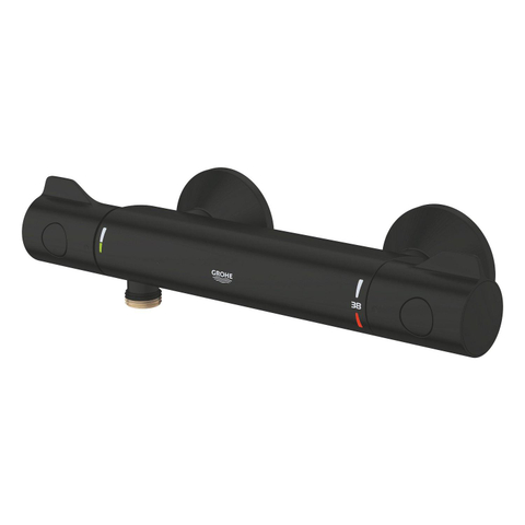 De GROHE Grohtherm 800 douchethermostaat in Matte Black (mat zwart) – nauwkeurige temperatuurregeling en een prachtige vormgeving Ervaar de voordelen van een thermostaatkraan tegen een aantrekkelijke prijs. Afgewerkt in sprankelend GROHE StarLight® chroom, profiteert Grohtherm 800 van GROHE TurboStat® technologie die zorgt voor een constante temperatuur. De SafeStop button, ingesteld op 38ºC, voorkomt dat kinderen de temperatuur boven de 38ºC draaien, terwijl de EcoButton je in staat stelt om het waterverbruik te verminderen. De ergonomische grepen bieden je een goede grip te allen tijde, zelfs met natte of ingezeepte handen. De Grohtherm 800 is beschikbaar als douche- en badthermostaatkraan.