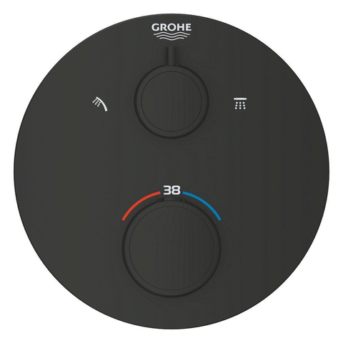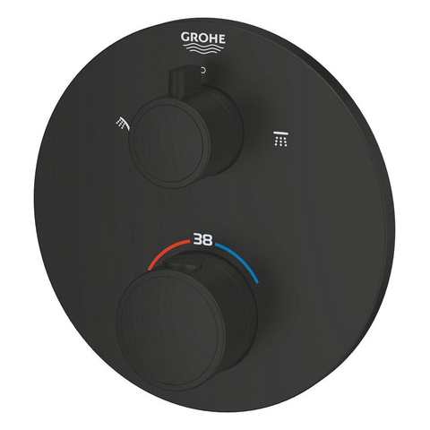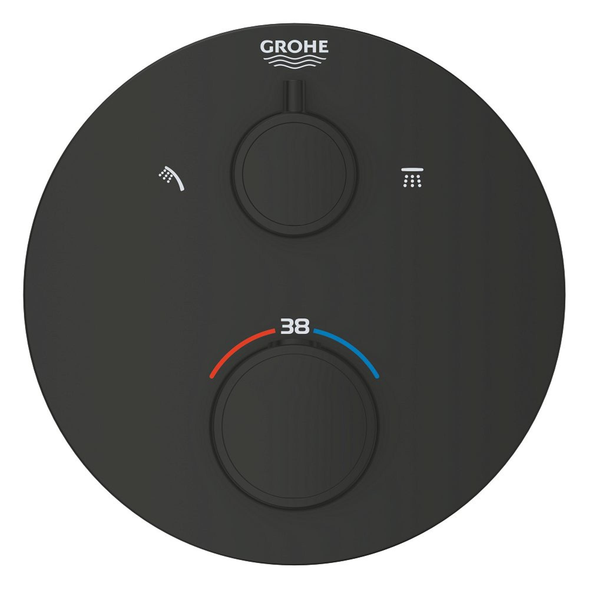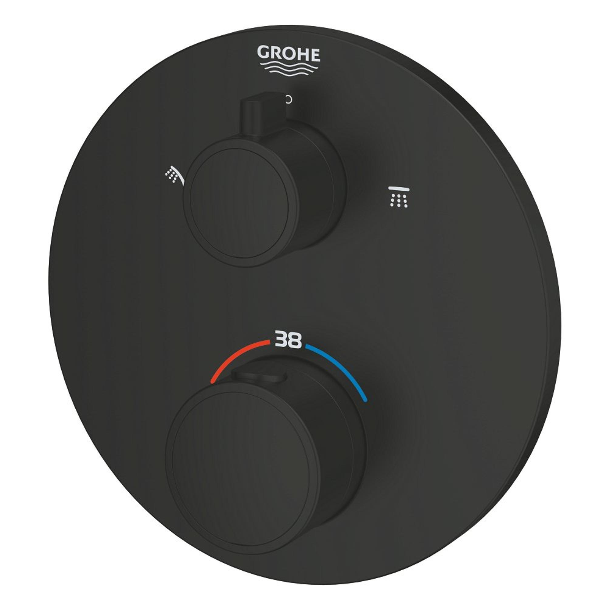 GROHE Grohtherm Douchemengkraan - afdekset - thermostatisch - 2 uitgangen - met omstelling - rond - matte black