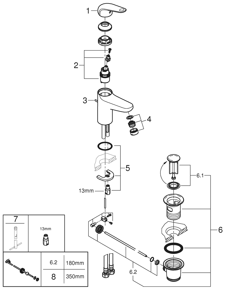 GROHE Euroeco Wastafelmengkraan - s-size - met trekwaste - chroom