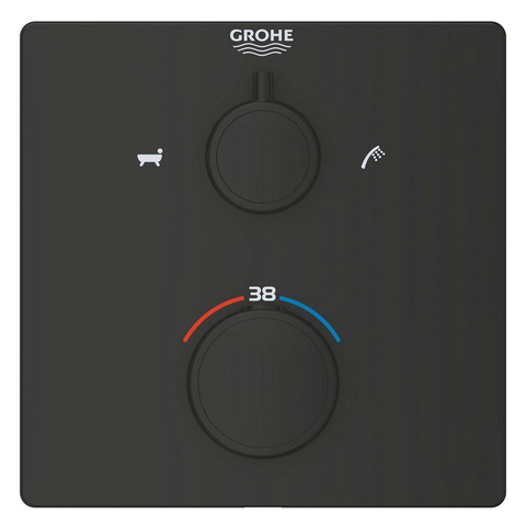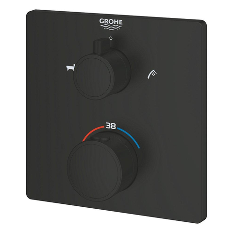 GROHE Grohtherm Badmengkraan - afdekset - thermostatisch - 2 uitgangen - vierkant - matte black