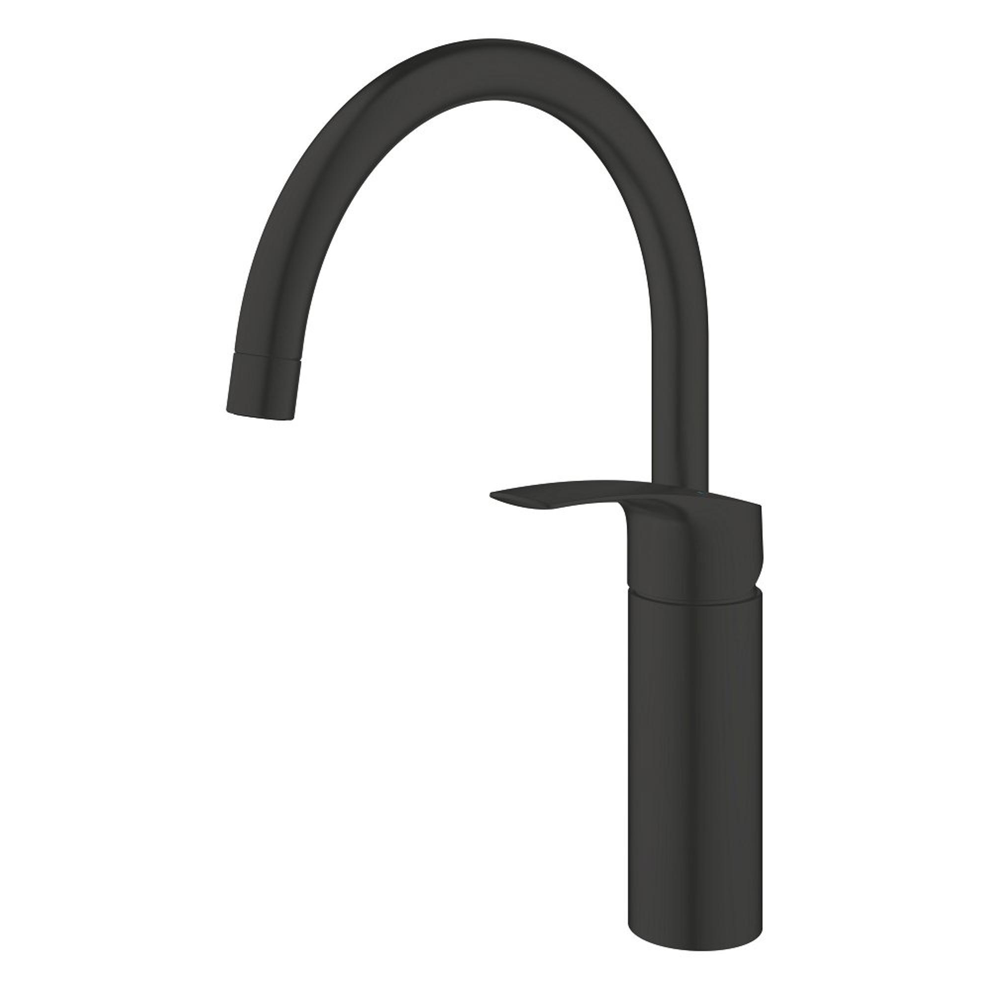 De GROHE Eurosmart keukenkraan in Matte Black (mat zwart) – een iconisch keukenontwerp met hoge draaibare uitloop en een stoer, eigentijds design