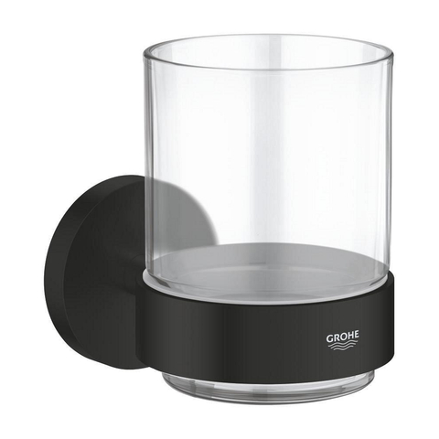 GROHE Essentials Bekerhouder - 10.6x9.9cm - met glas - mat zwart