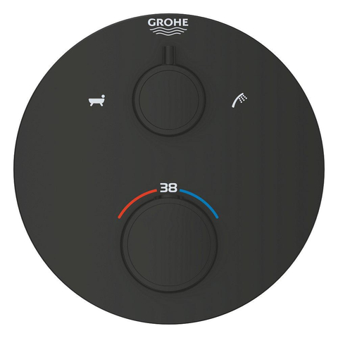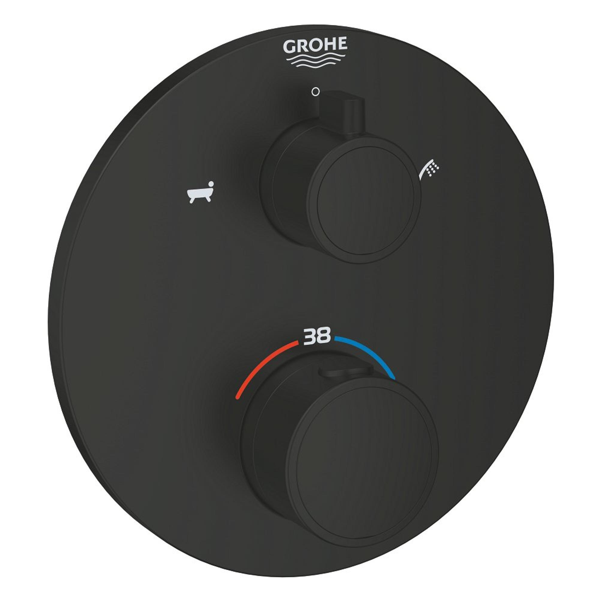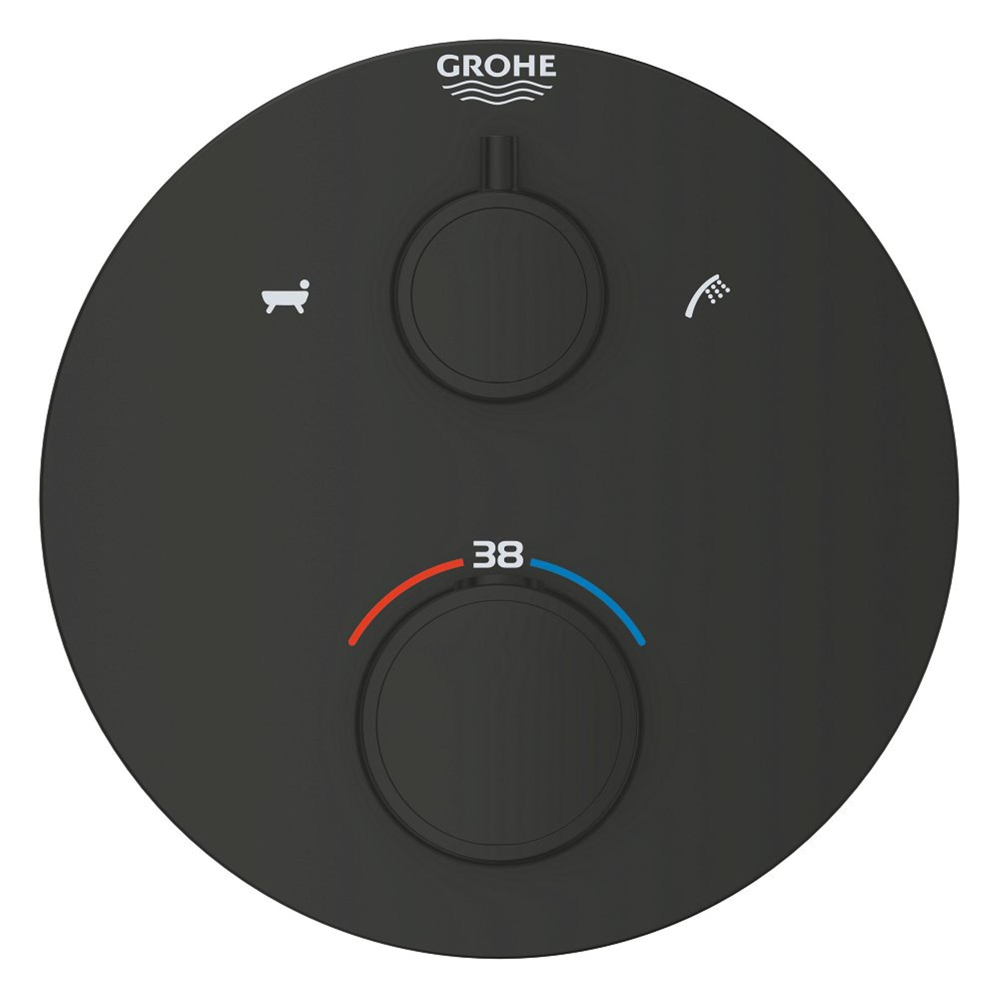 GROHE Grohtherm Badmengkraan - afdekset - thermostatisch - 2 uitgangen - met omstelling - rond - matte black