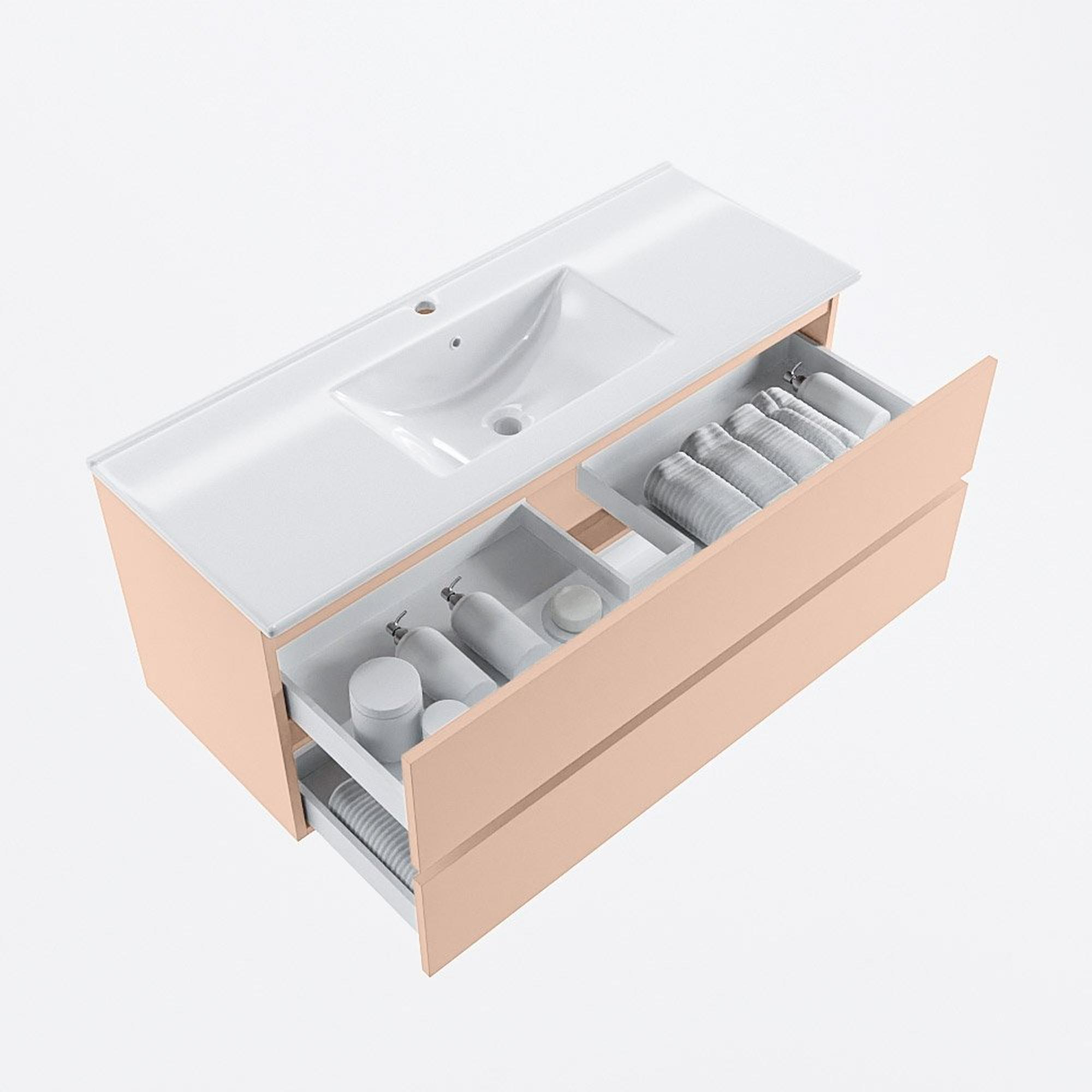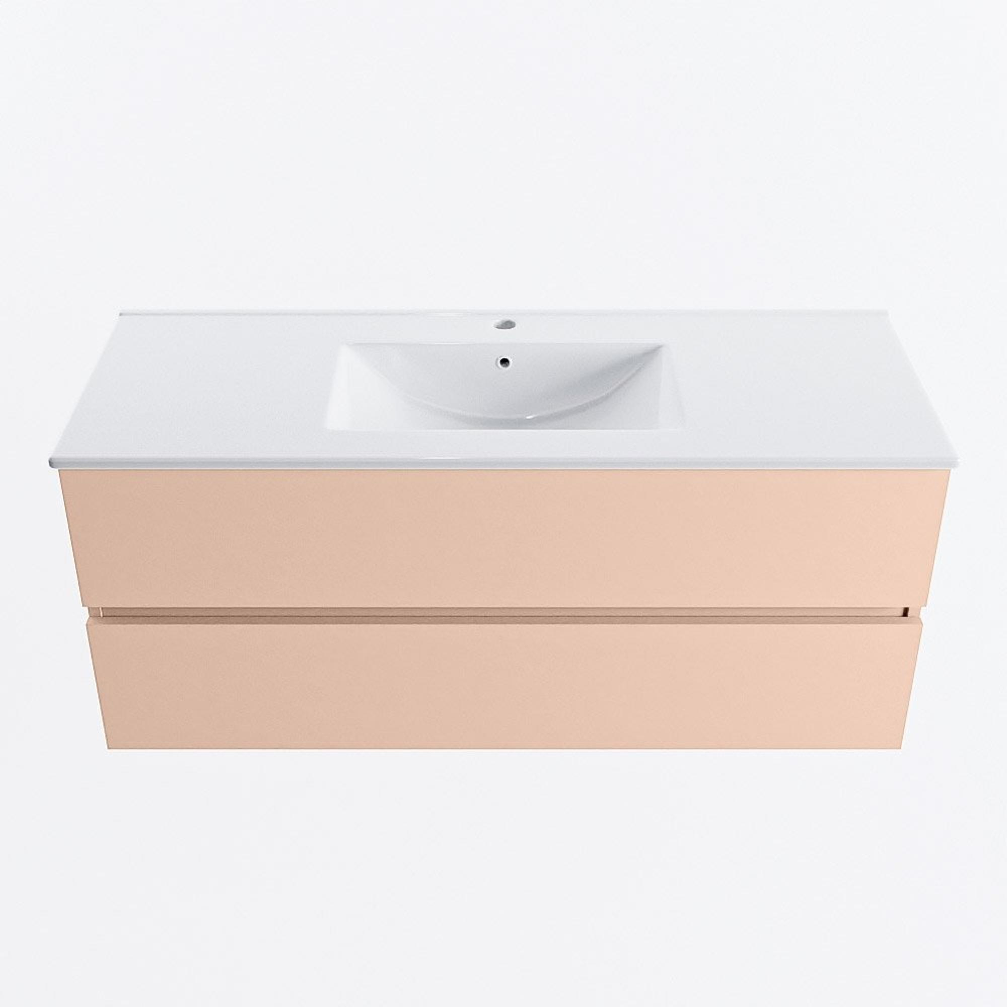 MONDIAZ VICA Badkamermeubelset - 120cm - onderkast rosee- 2 lades - wastafel denia midden - 1 kraangat - 60cm hoge versie - wit glans