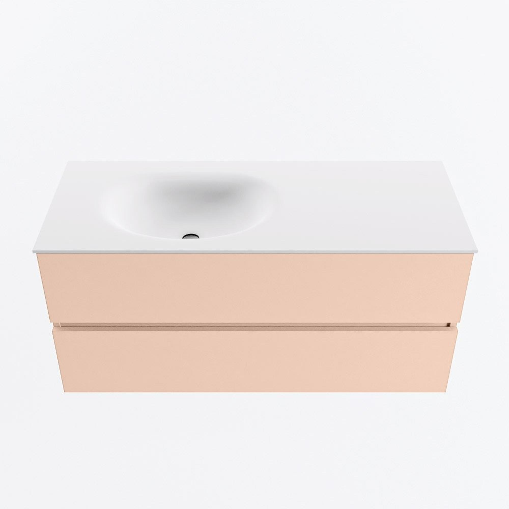 MONDIAZ VICA Badkamermeubelset - 110cm - onderkast rosee- 2 lades - wastafel moon links - 1 kraangat - 60cm hoge versie - talc