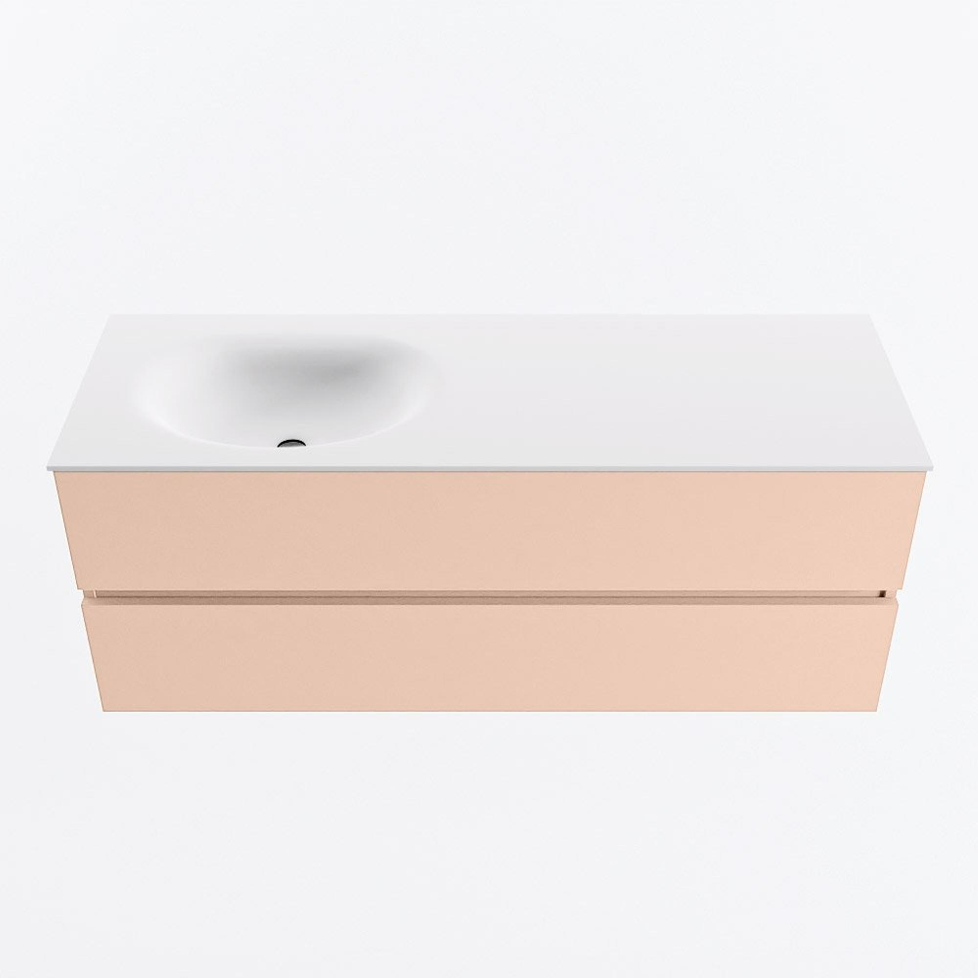MONDIAZ VICA Badkamermeubelset - 130cm - onderkast rosee- 2 lades - wastafel moon links - zonder kraangaten - 60cm hoge versie - talc