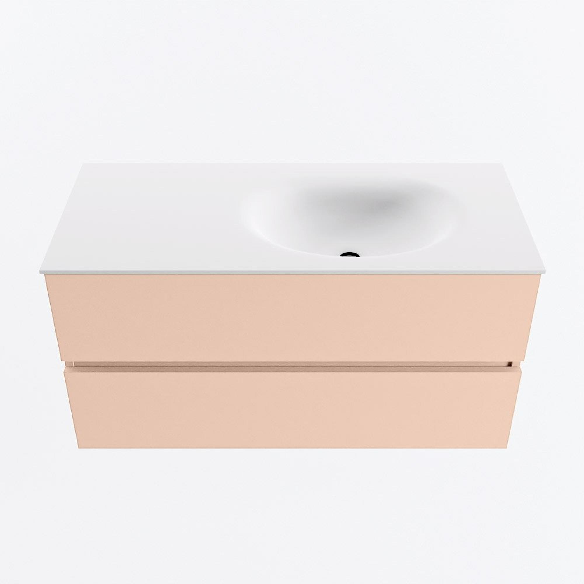 MONDIAZ VICA Badkamermeubelset - 100cm - onderkast rosee- 2 lades - wastafel moon rechts - 1 kraangat - 60cm hoge versie - talc
